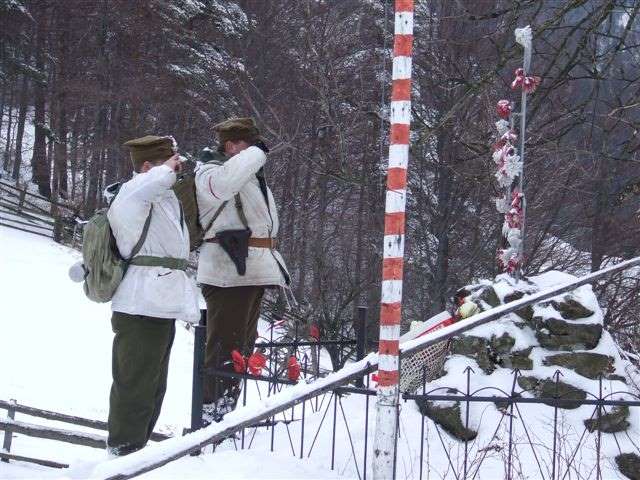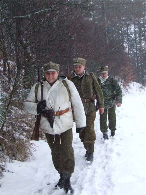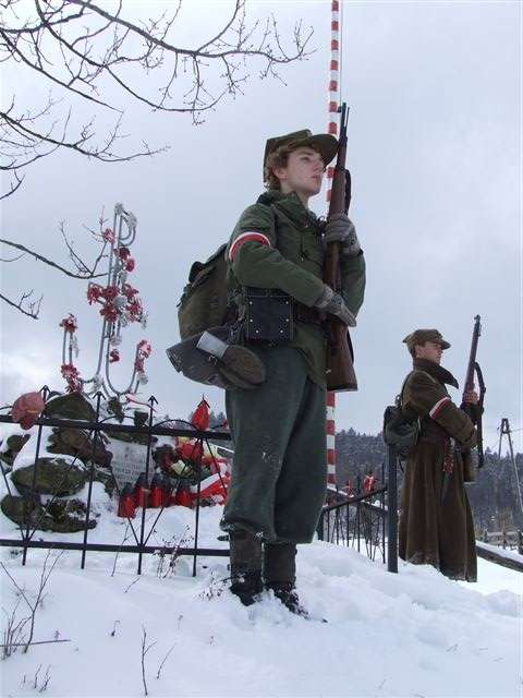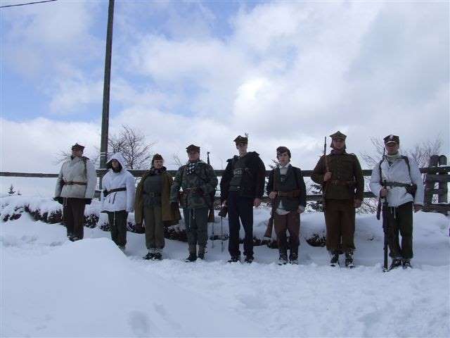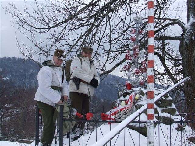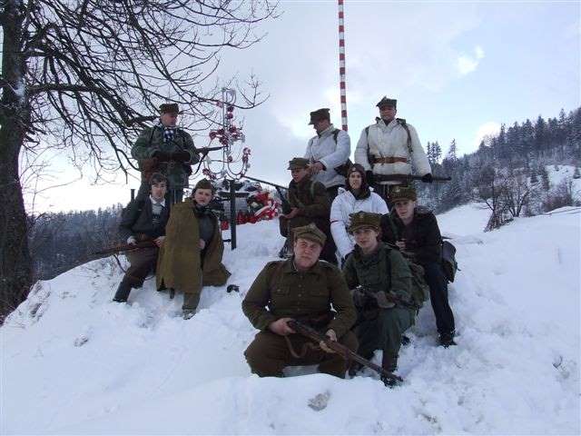 Właśnie te wydarzenia stały się impulsem do zorganizowania wyprawy i upamiętnienia poległych partyzantów. Rankiem 21 lutego 2010 roku, dokładnie 66 lat po tragedii na Przysłopie, członkowie GRH „Podhale ogniu” wyruszyli ze Schroniska Bereśnik, gdzie dotarli poprzedniego wieczora ze Szczawnicy. Ponieważ przez całą noc miały miejsce dość intensywne opady śniegu, szlak na Przysłop był zasypany. Grupa musiała torować sobie drogę przez nawiane wiatrem zaspy, co niewątpliwie potęgowało narastające zmęczenie. Uczestnicy mogli doświadczyć tego, co zapewne przeżywali partyzanci, jednakże Ci ostatni jak pamiętamy byli obciążeni dodatkowo zdobycznym uzbrojeniem i wyposażeniem. Piękna słoneczna pogoda oraz wspaniałe widoki rekompensowały potęgujące zmęczenie. W trakcie wędrówki dowódca przeprowadził ćwiczenia z topografii, niedaleko od celu podróży przećwiczono marsz ubezpieczony, skryte zajmowanie stanowisk i przechodzenie przez niebezpieczny teren. Po blisko dwóch godzinach marszu ukazało się wreszcie leżące w dolinie osiedle Przysłop – cel naszej wyprawy. Po stromym zejściu z pobliskich wzgórz, dotarliśmy pod obelisk upamiętniający walkę i śmierć polskich partyzantów. Członkowie GRH oczyścili przysypany śniegiem pomnik, złożyli wiązankę oraz zapalili pięć zniczy, symbolizujących pięciu poległych partyzantów. Pod pomnikiem zaciągnięto wartę honorową a cała Grupa stanęła do apelu w czasie którego wyczytano nazwiska i pseudonimy poległych, oraz przypomniano przebieg historycznych wydarzeń. Uroczystościom przyglądali się turyści, podążający szlakiem w kierunku Dzwonkówki. Wszyscy wspólnie odmówili modlitwę za poległych i oddali IM hołd. Moment modlitwy pod pomnikiem, był chwilą refleksji nad przemijaniem i bohaterstwem młodych ludzi, którzy w tym miejscu oddali życie za Ojczyznę. Warto kolejny raz zauważyć, że przybyli pod obelisk rekonstruktorzy, w przeciwieństwie do partyzantów, przeszli trasę bez obciążenia i świadomości grożącego niebezpieczeństwa. Mam nadzieję, że „Sławek”, „Strzała”, „Żbik”, „Kruk” i „Wicher”, patrząc z góry na tę skromną uroczystość z pewnością byli szczęśliwi, że ktoś tego dnia o nich pamiętał. Wyprawa na Przysłop była kolejną niezapomnianą lekcją historii i patriotyzmu. Młodzi ludzie żyjący w XXI wieku połączyli się pamięcią ze swoimi rówieśnikami sprzed ponad 60 lat.