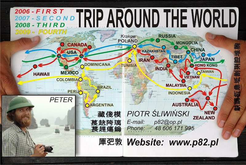 Pierwsza podróż dookoła świata, która rozpoczęła się latem roku 2006, była wyśmienitą okazją do oderwania się od codziennego życia, szarej rzeczywistości i utartych schematów. Jednym z etapów wyprawy stała się Australia, która swoim urokiem i przytłaczającą wielkością potrafiła zatrzymać Autora na prawie 3 miesiące. Do Australii wybrał się z biletem w jedną stronę bez sprecyzowanego planu, lądując w Sydney. Dosyć szybko spontaniczna przygoda przerodziła się w interesującą przeprawę dookoła Australii od Sydney do Brisbone, skąd udał się do Nowej Zelandii. W celu lepszego poznania kraju trasa podróży przebiegała przez wszystkie stany różnymi środkami transportu. Złożyły się na niego m.in. autobus, prom, rower, samolot, pociąg. Większość trasy była pokonana autostopem, nocując w buszu, na pustyni lub na ławce. Podróż urozmaicały spotkania z dzikimi zwierzętami, a przepiękne widoki, złociste pustynie dodawały tylko motywacji do dalszej wędrówki. Aparat fotograficzny „pracował na pełnych obrotach”, dzięki czemu owoce tej wyprawy będzie można zobaczyć w Klubie Podróżników „Śródziemie”