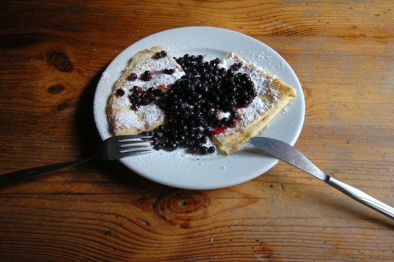 Żurek okazał się najlepszy ze wszystkich jakie jadłem w ciągu ostatnich dni w Tatrach, a naleśniki z borówkami dopełniły całości rozkoszy podniebienia.