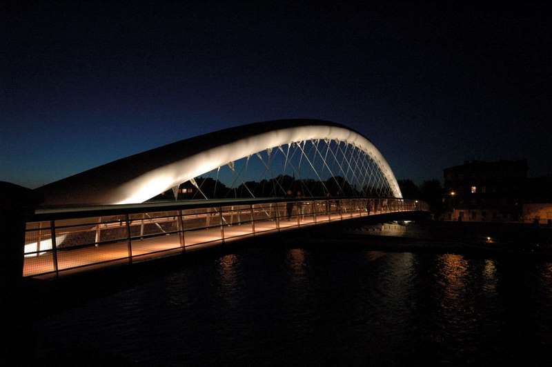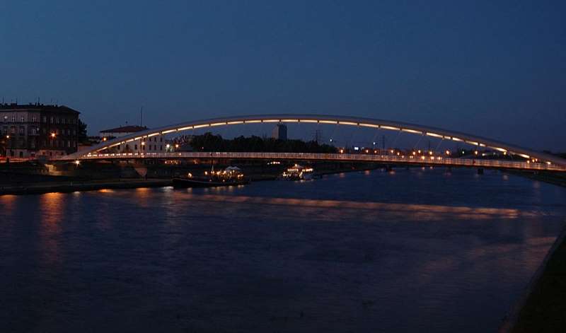 Miasta Kładka Bernatka Albin Marciniak2010-10-0406 wyświetlenia Prezydent Krakowa Jacek Majchrowski uroczyście otworzył Kładkę Ojca Laetusa Bernatka. Koszt budowy kładki to ok. 38 mln złotych (planowane było 26 mln) Kładka ma 145 metrów długości (rozpiętość między przęsłami) i ciekawą formę architektoniczną, która wspaniale wkomponowuje się w kazimierski i podgórski brzeg Wisły, które łączy ta konstrukcja. Nowa przeprawa połączyła dzielnice Kazimierz i Podgórze, dokładnie w miejscu, gdzie kiedyś istniał most Franciszka Józefa, nazwany też podgórskim. Autorem projektu kładki jest Autorska Pracownia Projektowo-Plastyczna prof. Andrzeja Gettera. Jej podstawowym elementem nośnym jest stalowa rura w formie łuku. Do niej, za pomocą specjalnych lin, podwieszone są dwa pomosty – jeden dla pieszych, drugi dla rowerzystów. Kładka usprawni komunikację między terenami znajdującymi się po przeciwległych stronach Wisły. Ma też poprawić bezpieczeństwo osób, które do tej pory korzystały z mostu Piłsudskiego i Powstańców Śląskich. Ze względu na duży ruch samochodowy, występuje tam wysokie ryzyko wypadków i kolizji z udziałem pieszych i rowerzystów. Na kładce rowerzyści i piesi będą mieli do dyspozycji oddzielne pasy. Kładka jest dwukierunkowa – rowerami będzie można wjeżdżać na nią z obydwu stron. Zadbano też o infrastrukturę w bezpośrednim sąsiedztwie kładki. Dzięki zmianom w organizacji ruchu na ul. Mostowej – wprowadzeniu kontrapasu, dla rowerzystów będzie dostępna najkrótsza droga z bulwaru Podolskiego na plac Wolnica. Nowa przeprawa została również dostosowana do potrzeb osób niepełnosprawnych. Wyposażono ją w łagodne podjazdy i wjazd na kładkę prosto z chodnika. Warta ponad 38 mln zł inwestycja została w części (15 mln zł) sfinansowana ze środków unijnych. (JK) http://www.bip.krakow.plhttp://www.krakow.pl tu kiedyś istniał most Franciszka Józefa, nazwany też podgórskim walka z powodzią widok z bulwarów od strony Podgórzana Kazimierzufoto:Albin Marciniak 5641DSC_7030 relacje/kladka_bernatka/5641DSC_7030 5643DSC_7034 relacje/kladka_bernatka/5643DSC_7034 5644DSC_7035 relacje/kladka_bernatka/5644DSC_7035 5645DSC_7040 relacje/kladka_bernatka/5645DSC_7040 5646DSC_7041 relacje/kladka_bernatka/5646DSC_7041 5647DSC_7042 relacje/kladka_bernatka/5647DSC_7042 5648DSC_7043 relacje/kladka_bernatka/5648DSC_7043 5649DSC_7044 relacje/kladka_bernatka/5649DSC_7044 5650DSC_7050 relacje/kladka_bernatka/5650DSC_7050 5651DSCF6578 relacje/kladka_bernatka/5651DSCF6578 5652DSCF6581 relacje/kladka_bernatka/5652DSCF6581 5653DSCF6583 relacje/kladka_bernatka/5653DSCF6583 5654DSCF6584 relacje/kladka_bernatka/5654DSCF6584 5655DSCF6585 relacje/kladka_bernatka/5655DSCF6585 5656DSCF6586 relacje/kladka_bernatka/5656DSCF6586 5657DSCF6587 relacje/kladka_bernatka/5657DSCF6587 5658DSC_9835 relacje/kladka_bernatka/5658DSC_9835 5659DSC_9839 relacje/kladka_bernatka/5659DSC_9839 5662DSC_6690 relacje/kladka_bernatka/5662DSC_6690 5663DSC_6691 relacje/kladka_bernatka/5663DSC_6691 5664DSC_6693 relacje/kladka_bernatka/5664DSC_6693 5666DSC_6706 relacje/kladka_bernatka/5666DSC_6706 5667DSC_6709 relacje/kladka_bernatka/5667DSC_6709 5668DSC_6729 relacje/kladka_bernatka/5668DSC_6729 5669DSC_6730 relacje/kladka_bernatka/5669DSC_6730 5671DSC_6732 relacje/kladka_bernatka/5671DSC_6732 5674DSC_6742 relacje/kladka_bernatka/5674DSC_6742 5675DSC_6744 relacje/kladka_bernatka/5675DSC_6744 5676DSC_6745 relacje/kladka_bernatka/5676DSC_6745 5677DSC_6749 relacje/kladka_bernatka/5677DSC_6749 5678DSC_6750 relacje/kladka_bernatka/5678DSC_6750 5679DSC_6753 relacje/kladka_bernatka/5679DSC_6753 5680DSC_6754 relacje/kladka_bernatka/5680DSC_6754 5681DSC_6770 relacje/kladka_bernatka/5681DSC_6770 5682DSC_6775 relacje/kladka_bernatka/5682DSC_6775 5683DSC_6776 relacje/kladka_bernatka/5683DSC_6776 5684DSC_6778 relacje/kladka_bernatka/5684DSC_6778 5685DSC_6782 relacje/kladka_bernatka/5685DSC_6782 5686DSC_6796 relacje/kladka_bernatka/5686DSC_6796 5687DSC_6797 relacje/kladka_bernatka/5687DSC_6797 5688DSC_6798 relacje/kladka_bernatka/5688DSC_6798 5689DSC_6799 relacje/kladka_bernatka/5689DSC_6799 5690DSC_6801 relacje/kladka_bernatka/5690DSC_6801 5691DSC_6806 relacje/kladka_bernatka/5691DSC_6806 5692DSC_6814 relacje/kladka_bernatka/5692DSC_6814 5693DSC_6816 relacje/kladka_bernatka/5693DSC_6816 5694DSC_6819 relacje/kladka_bernatka/5694DSC_6819 5695DSC_6820 relacje/kladka_bernatka/5695DSC_6820