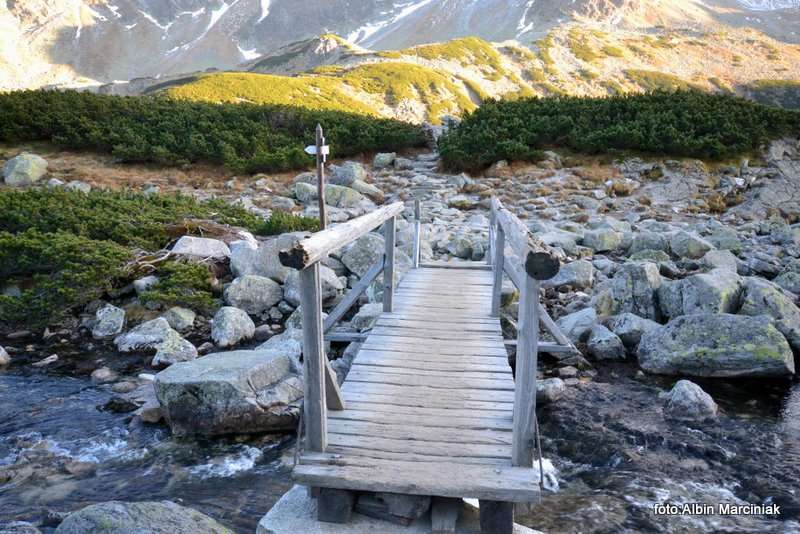Wychodząc ze schroniska Murowaniec skręcamy w lewo i po kilkudziesięciu metrach schodzimy z szerokiego traktu na szlak zielony i żółty.