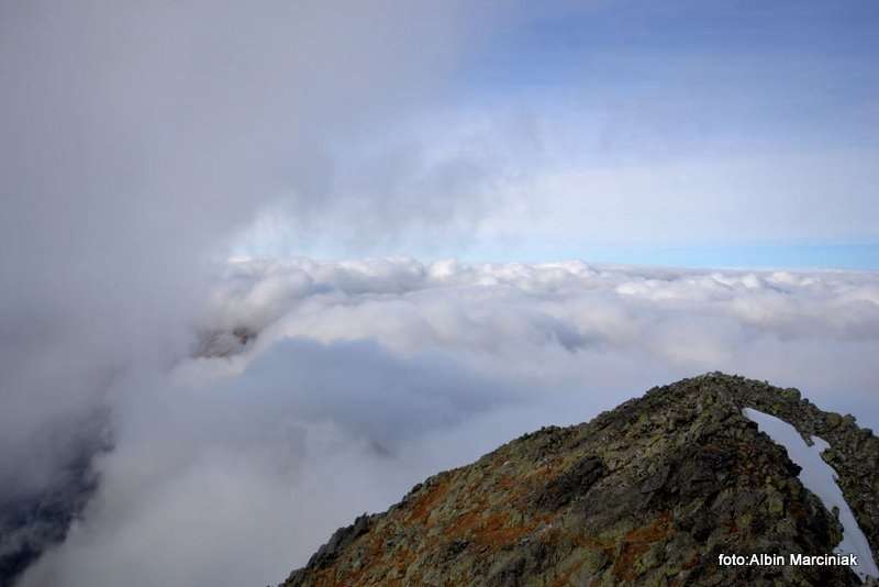 Po dotarciu na szczyt Świnicy były to ostatnie chwile widoczności bo chmury otoczyły wierzchołek i szczelnie zamknęły.