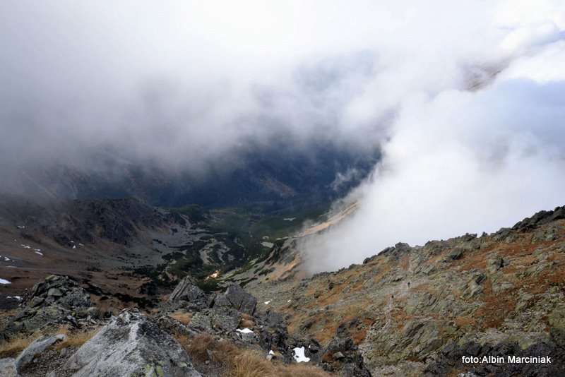 Cała trasa zejściowa przez Liliowe i Beskid była w chmurach, z wiatrem i przy szybko spadającej temperaturze.