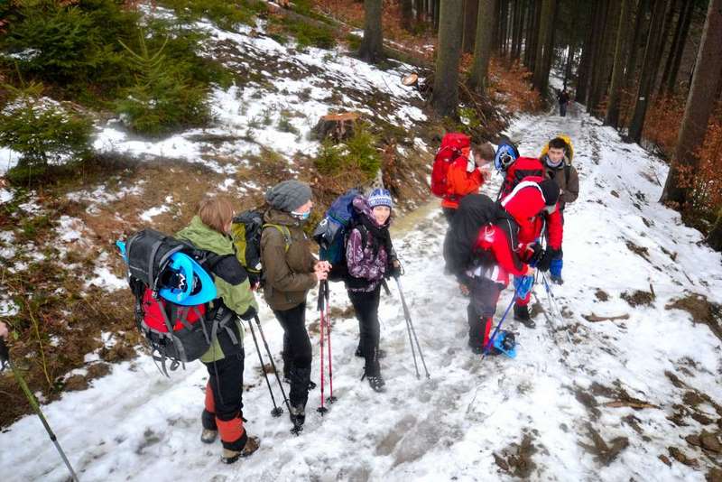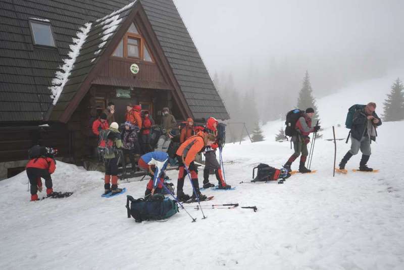 - posiadać odpowiedni ubiór i sprzęt turystyczny (nieprzemakalna kurtka, spodnie, buty, ew. stuptuty, czołówka, rękawice, czapka, apteczka, śpiwór, rakiety / skitury – możliwość wypożyczenia rakiet w cenie 15 złotych za dzień)