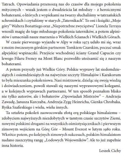 Spotkanie poprowadzi Leszek Cichy, autor wstępu do książki. Legendarny zdobywca Mount Everestu w 1980r zimą wraz z Krzysztofem Wielickim.