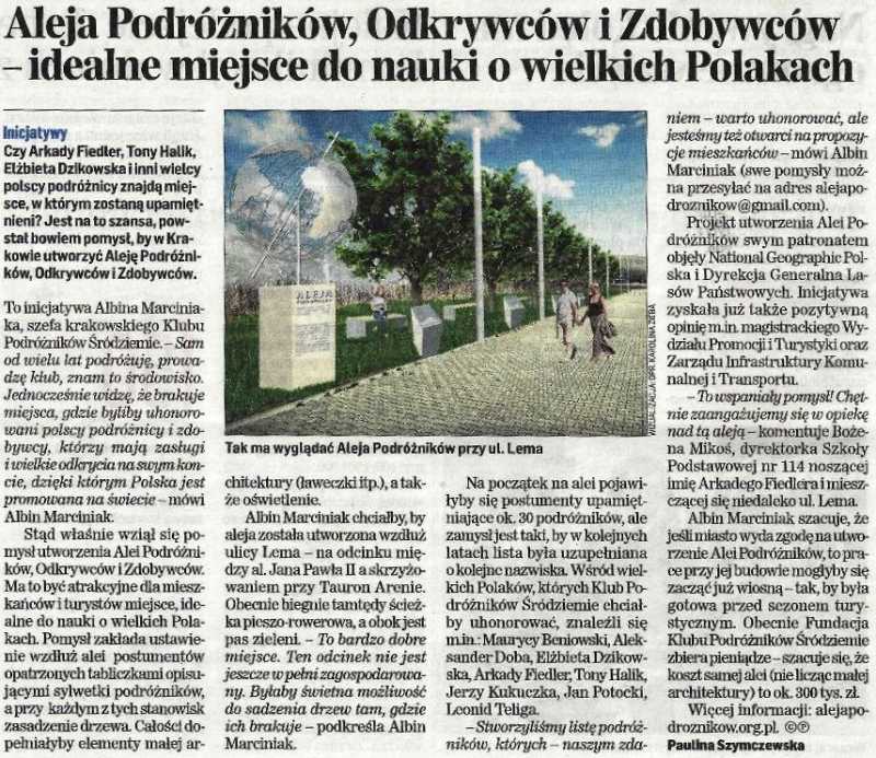 W mediach o Alei Podróżników, Odkrywców i Zdobywców