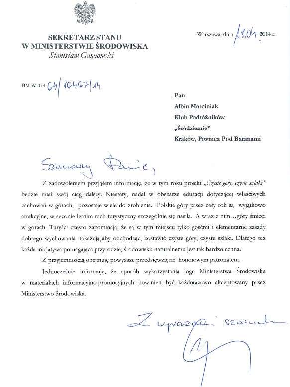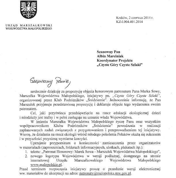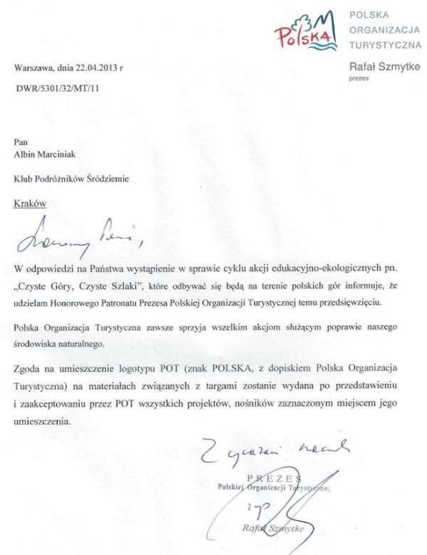 patronaty całego projektu Czyste Góry Czyste Szlaki