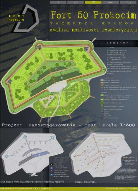 Twierdze i Forty Fort główny artyleryjski 50 „Prokocim” w Krakowie Albin Marciniak2020-04-0506 wyświetlenia Fort główny artyleryjski 50 „Prokocim” Fort 50 Prokocim – jeden z fortów Twierdzy Kraków. Powstał w latach 1882-1886. Zadaniem fortu była obrona Traktu Lwowskiego. Jest to typowy fort artyleryjski. Razem z sąsiednimi fortami brał udział w zakończonych zwycięstwem walkach z Rosjanami, w grudniu 1914. W okresie międzywojennym służył jako magazyn wojskowy, a później cywilny. W latach 70. XX wieku został przekazany ówczesnej Akademii Medycznej w Krakowie. Obecnie niezagospodarowany. Fort otaczają ul. K. Kostaneckiego i ul. Medyczna. opracowanie Karolina Zięba – Kulawik Fort 50 Prokocim wchodził w skład III pierścienia Twierdzy Kraków. Jako ostatni w zespole umocnień strzegł przed zagrożeniami wynikającymi z obecności linii kolejowej i drogi wylotowej z twierdzy. Zadaniem fortu była obrona Traktu Lwowskiego, obecnie jest to ul. Wielicka. Plan obiektu, fort główny „Prokocim”, kat.b bez konserwacji. Kraków, w grudniu 1927Archiwalny rzut całości założenia fortu 50; skala 1:800; oraz schematyczny przekrój po osi założenia; 1:400. Fort Prokocim w Krakowie formalnie został przejęty w użytkowanie przez Akademię Medyczną, ale faktycznie nie został nigdy zagospodarowany. Obecnie stanowi własność miasta. Od okresu międzywojennego obiekt użytkowany był jako magazyn wojskowy, później cywilny, w latach siedemdziesiątych został opuszczony. Wskutek wielu lat całkowitego opuszczenia jest zdewastowany (niemal całkowicie pozbawiony stolarki oraz pierwotnego wyposażenia). Jest jednak dostęp do wszystkich pomieszczeń, korytarzy, kaponiery ze strzelnicami. Wały obronne oraz fosa również są zachowane, choć już niekompletnie. Od końca lat 90′ postępuje dewastacja urządzeń fortu. W ostatnich latach skradziono unikalny sponson pancerny. Funkcje jakie pełniła zieleń twierdz zmieniały się wraz z biegnącym czasem. Po odzyskaniu niepodległości przez Polskę, obiekty fortyfikacyjne pełniły rolę magazynów, a zieleń była pielęgnowana. Wały poddawano konserwacji, uzupełniano wszelkie ubytki, zagęszczano zadrzewienia maskujące, a na działkach fortowych zakładano szkółki drzew. W okresie międzywojennym na terenie twierdzy krakowskiej nadal wykorzystywano austriackie zadrzewienia maskujące. Fort główny artyleryjski 50 „Prokocim”, Kraków {source}<iframe src=”https://www.google.com/maps/embed?pb=!1m18!1m12!1m3!1d2564.004918756724!2d19.99415319616091!3d50.0112630186622!2m3!1f0!2f0!3f0!3m2!1i1024!2i768!4f13.1!3m3!1m2!1s0x47164371d86b0a4b%3A0xe9fb8f626128819b!2sFort%20g%C5%82%C3%B3wny%20artyleryjski%2050%20%22Prokocim%22!5e0!3m2!1spl!2spl!4v1586103820398!5m2!1spl!2spl” width=”600″ height=”450″ frameborder=”0″ style=”border:0;” allowfullscreen=”” aria-hidden=”false” tabindex=”0″></iframe>{/source} Fort Prokocim jest częścią Twierdzy Kraków, jednego z największych tego typu obiektów obronnych w Europie. Kraków jest mekką turystów z całego świata, przyjeżdżających by zobaczyć Wawel, Sukiennice czy Kopalnię soli w Wieliczce. Niestety, mimo że co roku przybywają kolejne miliony turystów a miasto wydaje ogromne pieniądze na promocję by przyciągnąć kolejnych, nikt i nic nie robi by Forty Twierdzy Kraków włączyć do oferty turystycznej. Mało tego, miasto nie zamierza ich chronić a nawet pozwala na wyburzanie. Przykładem jest fort w Bronowicach:„Nie ma powodu, by chronić ten teren – przekonuje Elżbieta Koterba, wiceprezydent Krakowa. – Teraz jest tam teren z barakami, pomiędzy którymi rosną drzewa. Nie występuje tam chroniona zieleń. Także konserwator zabytków nie wskazał, że ten obszar powinien być chroniony. Dlatego wskazaliśmy ten obszar pod inwestycje – dodaje Koterba. Wiceprezydent podkreśla, że obszar ten nie jest objęty miejscowym planem zagospodarowania, a to oznacza, że jeśli przyszły, nowy właściciel będzie chciał tam wybudować blok, to zgodę dostanie.” Włodarze Krakowa niczym w amoku, ruszyli na podbój turystów z całego świata by pod hasłem Zimowej Igrzysk Olimpijskich ściągnąć ich kolejne miliony. Nakładami kilkunastu miliardów zł zostaną wybudowane kolejne, w większości jednorazowego użytku obiekty. Przyjadą turyści i co ? O kopalni, Wawelu Sukiennicach itp wie większość z potencjalnych przyszłych przyjezdnych. Może czas ruszyć głowami i za „czapkę gruszek i garść drobnych” dać turystom znacznie więcej ? dać im coś czego nie ma prawie nigdzie na świecie ? Czy uporządkowanie terenu fortów, zabezpieczenie, odpowiednie oznakowanie i stworzenie czytelnego i logicznego szlaku dla chcących zwiedzać, kosztuje aż tak wiele ? Czy może kosztować więcej niż nikomu już nie potrzebny stadion przy Reymonta ? Czy może kosztować więcej niż roczne utrzymanie Straży Miejskiej ? Śmiem twierdzić że przy odrobinie dobrej woli ze strony urzędników, stosunkowo niewielkich kosztach (choćby oszczędności drogowych na tegorocznej zimie ) tysiące pasjonatów sami doprowadzili by do tego, że Szlak Twierdzy Kraków stał by się kolejnym symbolem Krakowa. O potrzebie ratowania obiektów Szlaku Twierdzy Kraków, świadczy choćby ilość stron, blogów, książek, opracowań i wielu tysięcy pasjonatów jacy żyją tym tematem. Nie chodzi o to by z każdego fortu zrobić hotel, restaurację, dom kultury czy galerię. W większości 'trwałe ruiny” są bardziej interesujące niż otynkowane i obłożone szkłem inwestycje. opracowanie Karolina Zięba – Kulawik Projekt koncepcyjny zagospodarowania Fortu Prokocim opracowanie: Karolina Zięba – Kulawik ślady poszukiwaczy skarbów Poniżej Fortu 50 Prokocim, przy ul. Wielickiej, na prawo od parkingu hipermarketu ”Tesco”, na terenie ogródków działkowych, jest schron amunicyjny, zbudowany w latach 1913 – 14. Obiekt