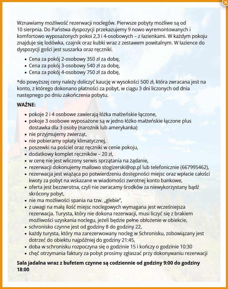 informacja jaka widnieje na stronie schroniska a właściwie chyba będzie – hotelu górskiego