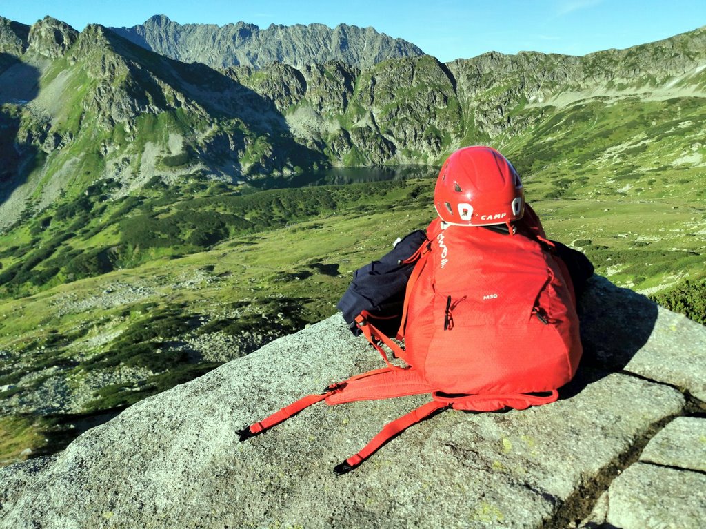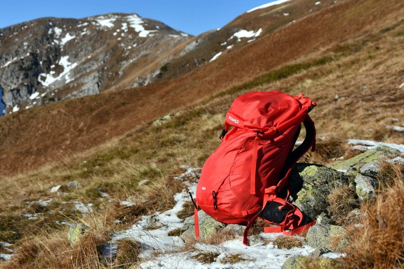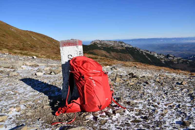 Szukając tego złotego środka od kilku miesięcy używam 30 litrowego Campa. Wydawało by się że plecak jak plecak, ale po kilku wypadach w Tatry teraz już niejako automatycznie sięgam po niego pakując się w góry. Powodów takiego wyboru jest kilka a najważniejsze z nich jakie dla mnie okazały się istotne to: łatwy dostęp zarówno od góry jak i od strony pleców, po odpięciu na zamek. Pakowna górna podwójna komora na zamki (czapka) pozwala na szybki dostęp bez otwierania głównej komory. System szybkiego mocowana (troki na rzepy) kijków trekingowych czy czekanów a dodatkowo na groty czekanów jest specjalna pełna komora. Takie mocowanie pozwala schować ostrza, tak niebezpieczne podczas transportu czy wędrówki. Całkiem fajny system nośny z dobrą wentylacją na plecach oraz niewielka waga to argumenty bezdyskusyjne.