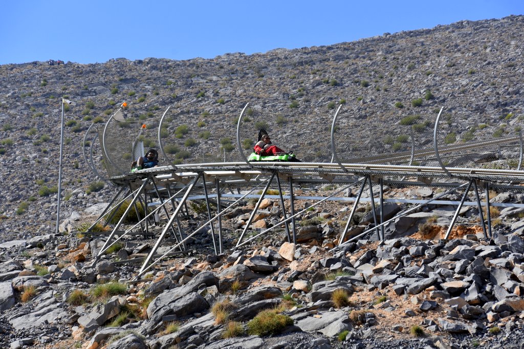 Wybierając się do Zjednoczonych Emiratów Arabskich pierwszym skojarzeniem jest oczywiście Dubaj. Owszem, to miasto robi wrażenie ale ZEA składa się z 7 Emiratów a najbardziej różnorodnym jest zapewne Ras Al Khajmah. Pasmo górskie Al-Hadżar z jego najwyższym szczytem Jebel Jais przyciąga od kilku lat turystów z całego świata. Przyjeżdżając w góry można skorzystać z różnych ekscytujących i wielokrotnie nagradzanych atrakcji, w tym z Jais Flight, najdłuższej tyrolki na świecie, Jais Sky Tour i noclegu w Bear Grylls Explorers Camp. Najwyżej położona restauracja w ZEA, 1484 by Puro która działa od niespełna roku, przezywa prawdziwe oblężenie. Będąc w tym miejscu przed rokiem miałem okazję zjechać na najdłuższej tyrolce świata a pozostałe atrakcje były dopiero w planach. Tym razem mogłem skorzystać zarówno z kuchni jak i panoramy wspomnianej restauracji, oraz zupełnie nowej inwestycji której nie ma jeszcze nawet na mapach Google. Ta nowość to tor saneczkowy dający niemniej frajdy co zjazd na sąsiedniej tyrolce.