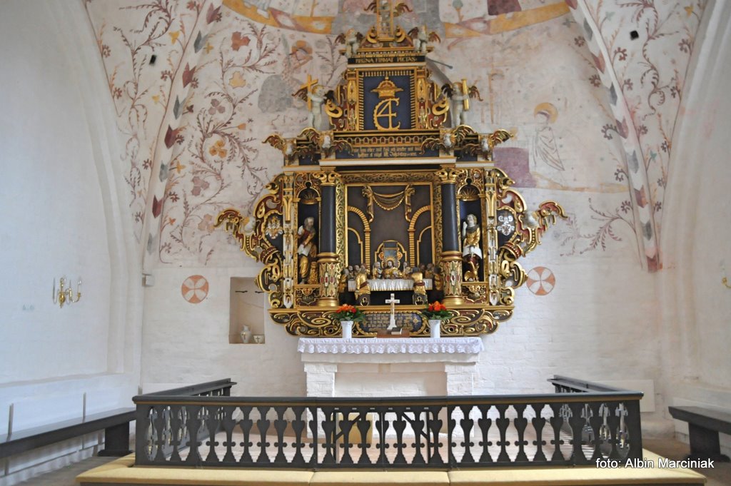 Bogato rzeźbiony ołtarz z 1646 r. był darem córki króla Chrystiana IV, Leonory Christiny, i jej męża Corfitza Ulfeldta. Centralna rama przedstawia instytucję Komunii Świętej. Boki przedstawiają ewangelistów Marka i Jana.