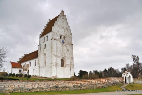 Zabytkowy kościół Keldby Elmelunde Kirke na wyspie Mon w Danii