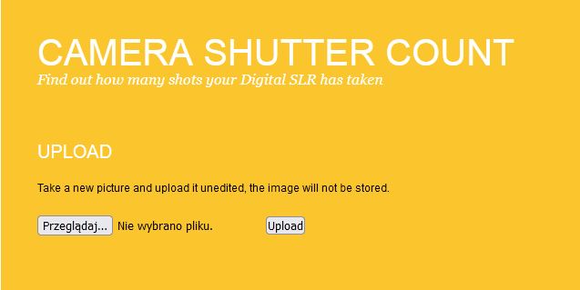 Otwieramy program https://www.camerashuttercount.com/ a następnie importujemy to zdjęcie do programu. Klikamy widoczny przycisk „upload” i czekamy na pracę programu. Po chwili pojawi nam się okno z cyfrą pokazującą faktyczny przebieg migawki oraz model aparatu z jakiego pochodzi sprawdzany plik. To także daje nam niejako potwierdzenie, gdy np. poprosimy sprzedającego, by podesłał nam zdjęcie zrobione tymże aparatem jakiego zakupem jesteśmy zainteresowani.