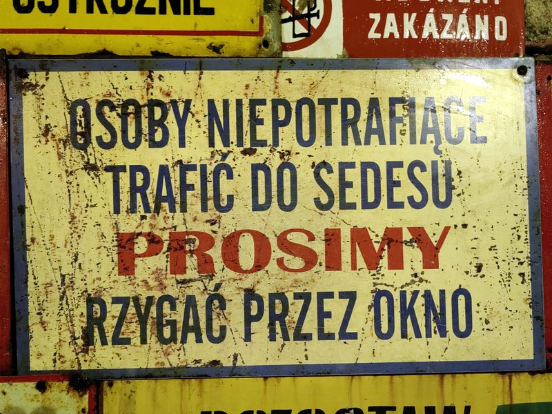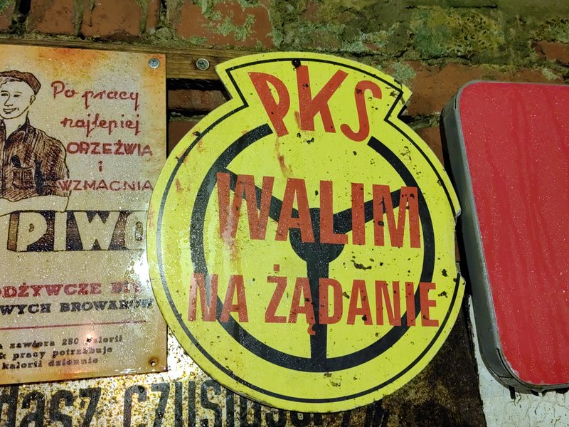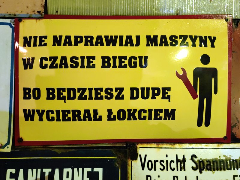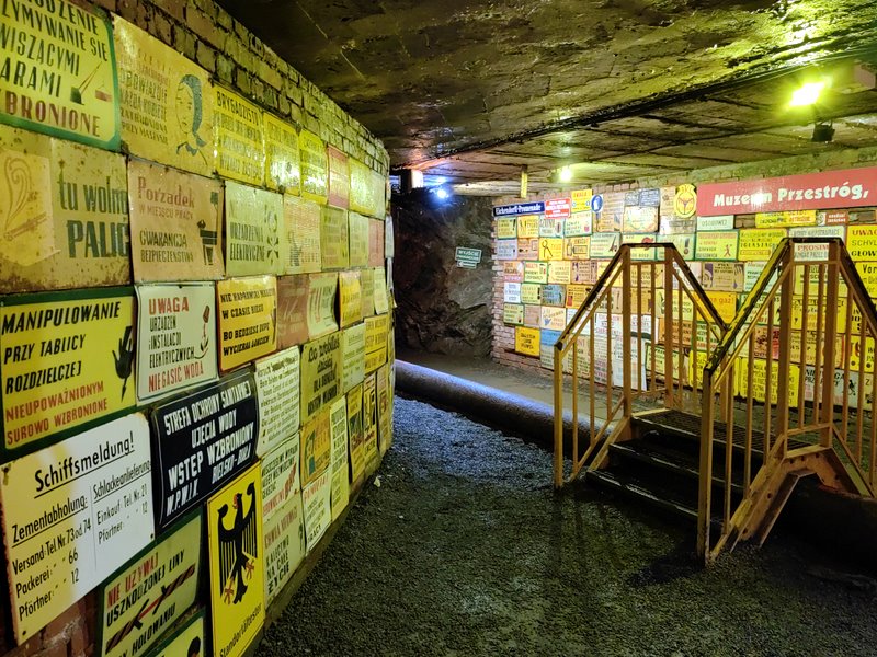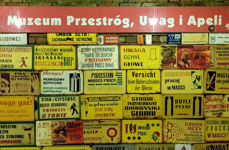 Kolekcja tablic ostrzegawczych i informacyjnych, związanych głównie z przepisami BHP uwieczniających najróżniejsze hasła, instrukcje i ostrzeżenia. Często są to hasła wręcz zabawne, typu: „Nie rzucaj młotkiem, będąc na rusztowaniu” lub bardziej ambitne „Co zrobiłeś dzisiaj dla obniżenia kosztów własnych?”. Nie brakuje tablic z tekstami wręcz kultowymi, jak np „Walim na żądanie” a jest to tabliczka z przystanku PKS na żądanie w Walimiu. Zwiedzając kopalnię z przewodnikiem, nie sposób wczytać się we wszystkie tablice, stąd dla ułatwienia poniższa galeria najciekawszych z nich.