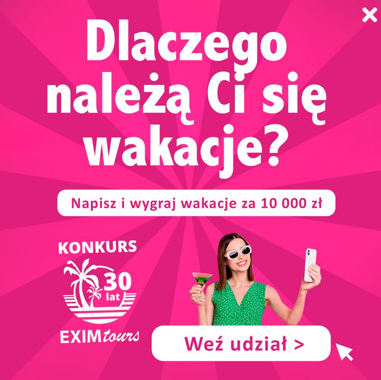 Do korzystania z nowego serwisu exim.pl ma zachęcić konkurs Touroperatora, w którym uczestnicy mogą wygrać jedną z 20 nagród. Zasady są bardzo proste. Wystarczy wejść na exim.pl i napisać dlaczego właśnie Tobie należą się wakacje? Do wygrania vouchery na wyjazdy o łącznej wartości 50.000 zł.