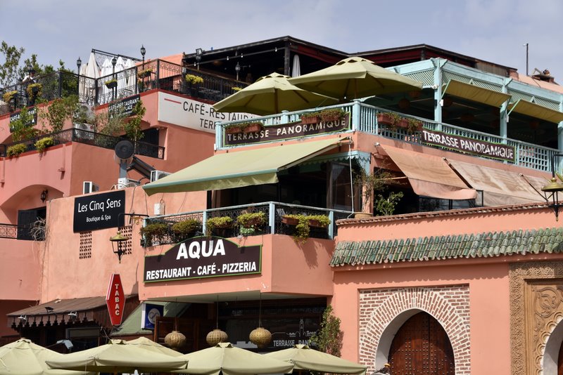 Nocowanie w Marrakeszu. Owszem, można nocować w 5* hotelach lub w podrzędnych hostelach na obrzeżach miasta. Przenocować można taniej lub znacznie drożej, w zależności od lokalizacji i standardu. Jednak dla wielu osób lecących wiele tysięcy kilometrów z najdalszych zakątków świata, jednym z najważniejszym elementów pobytu w tym mieście jest nocleg z widokiem na plac Jamaa el-Fna, siedząc na tarasie jednej z wielu kawiarni na kaskadowych dachach wielu domów otaczających plac.