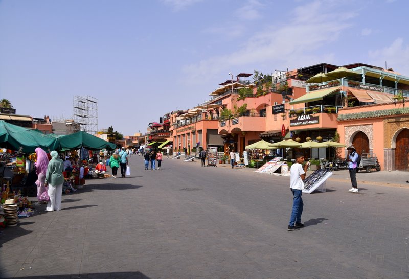 Jemaa el-Fnaa – „plac bez meczetu” lub „zgromadzenie umarłych”, które nawiązywać ma do targów niewolników i egzekucji, jakie odbywały się tutaj aż do XIX wieku.