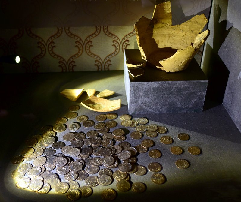 W muzeach we Wrocławiu i Środzie Śląskiej znajdują się odzyskane fragmenty znaleziska: prawie osiem tysięcy monet, gotycka korona ślubna, złote pierścienie i inne elementy średniowiecznej biżuterii. Po podziale eksponatów w 1997 r. większa ich część została umieszczona na stałej wystawie w Muzeum Regionalnym w Środzie Śląskiej. Pozostałe natomiast znajdują się w Muzeum Archeologicznym we Wrocławiu. 3700 znalazło się w Muzeum Archeologicznym we Wrocławiu, 3900 wpisano do inwentarza Muzeum Narodowego we Wrocławiu, 91 wpisano do inwentarza Muzeum Regionalnego w Środzie Śląskiej. Klejnoty pochodzą z przełomu XIII i XIV wieku, a skarb został ukryty przez Mojżesza, średzkiego Żyda.