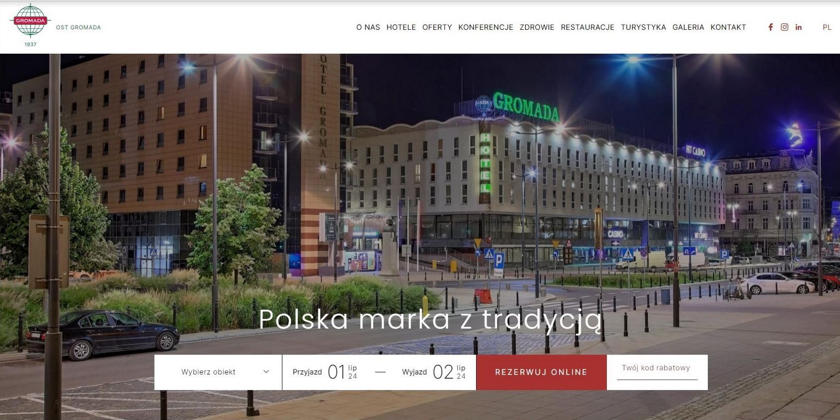 Strona została przygotowana przy współpracy z firmą PROFITROOM. Firma ta obsługuje systemy rezerwacji większości polskich hoteli oraz zajmuje się również budową stron internetowych mając w tym zakresie duże osiągnięcia. Dzięki nowej odsłonie strony internetowej prognozowany jest dalszy wzrost sprzedaży noclegów w Hotelach i Ośrodku Wypoczynkowym Gromada poprzez własny booking engine.