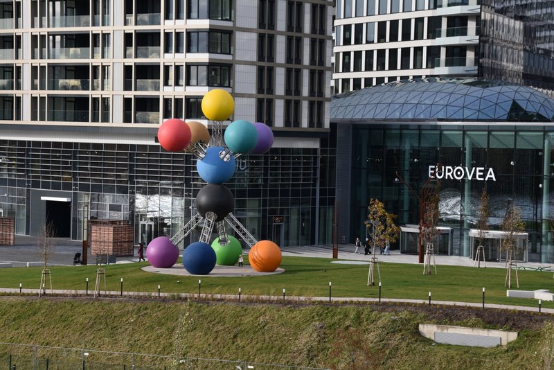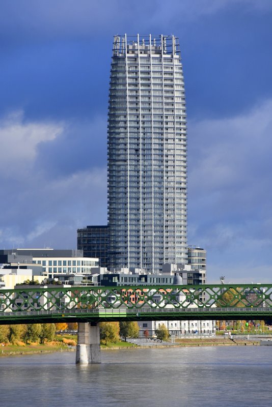 Potentat budowlany J&T Real Estate zrealizował budowę blisko 170-metrowego (46 pięter) wieżowca mieszkalnego. W momencie oddania do użytku, obiekt stał się najwyższym na Słowacji. Główna część projektu Eurovea 2 składa się z: rozbudowanego centrum handlowego (84 tys. mkw.), budynku mieszkalnego na nabrzeżu, dwóch budynków biurowych (w sumie około 40 tys. mkw.) i wieży mieszkalnej. Spacerując brzegiem Dunaju nie sposób nie zauważyć szklanej wieży. Do niedawna uwagę przykuwała restauracja w kształcie UFO na pylonie mostu, oraz oczywiście zamek górujący nad miastem. Teraz mamy wielkie trio będące wizytówką miasta.