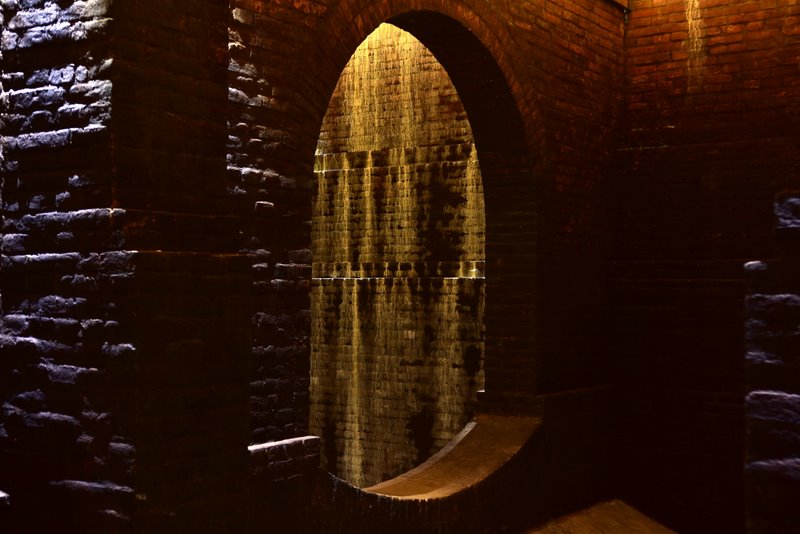 Zbiorniki wodne na Wzgórzu Żółtym zbudowano dla tzw. sieci wodociągowej skryby, co wzmocniło niedostateczną sieć wodociągową rozwijającego się miasta. Pierwszy murowany zbiornik powstał w 1874 roku według projektu londyńskiego budowniczego Thomasa Docwry’ego. Ma kwadratowy plan piętra o wymiarach 45×45 metrów i wysokości 6 i pół metra. Inspirowany angielskimi strukturami gospodarki wodnej, wyróżnia się unikalną konstrukcją i wyrafinowanym systemem wsparcia. Podłoga nie jest tu płaska, lecz składa się z tzw przeciwsklepienia, które wraz ze ścianami i sklepieniami kolebkowymi tworzą doskonale nośną i statycznie funkcjonalną całość. Regularna i precyzyjna konstrukcja sprawia wrażenie nieskończonej i ciągle oddalającej się przestrzeni, zbudowana jest z ręcznie robionych wypalanych cegieł.