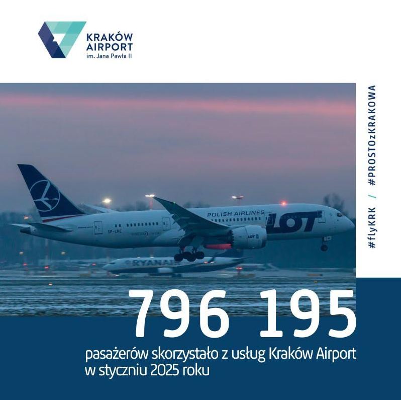 „W styczniu 2025 roku z usług Kraków Airport skorzystało 796 195 pasażerów, czyli o 15% więcej w stosunku do analogicznego okresu w ubiegłym roku. Miesiąc ten był zatem rekordowym styczniem pod względem ilości obsłużonych podróżnych na krakowskim lotnisku” – powiedział Łukasz Strutyński, prezes zarządu Kraków Airport.