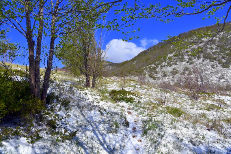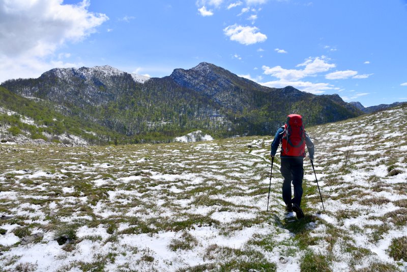 Przygotowując się do tej wędrówki, starałem się by być niezależnym w terenie, a jednocześnie dbałem o wagę sprzętu i każdy niezbędny element wyposażenia. Przy krótkich wypadach nie ma to aż takiego znaczenia, jak w tym przypadku, gdzie na odcinku ponad 50 km czekała mnie spora ilość podejść, zejść, różnorodność szlaku i duża zmienność pogodowa i temperatur. Matka natura już na starcie zadbała o odpowiedni akcent, zrzucając w noc przed startem sporo śniegu. Tak więc licząc na Chorwackie kwietniowe ciepełko, dostałem zimowe warunki, z zimnym wiatrem a czasami zacinającym gradem zmieszanym z deszczem.