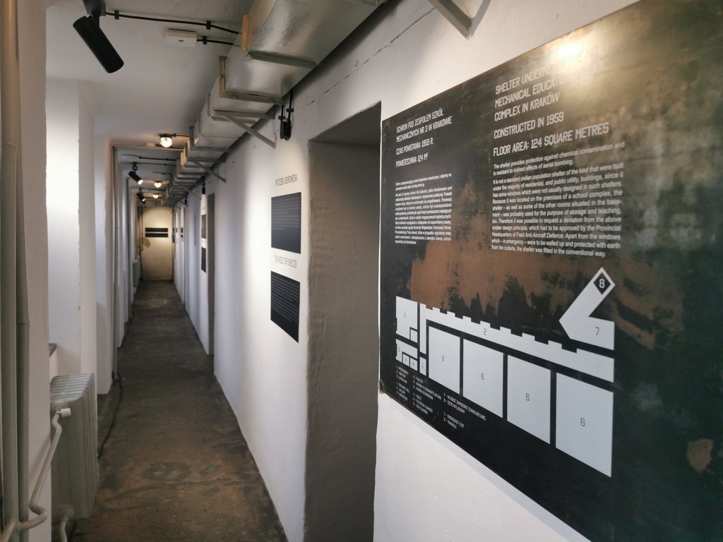 Wystawa jest zlokalizowana w schronie przeciwlotniczym z lat 50. XX w., pod budynkiem Zespołu Szkół Mechanicznych nr 3. Opowiadamy tu o instynktownej potrzebie ukrycia przed zagrożeniem, charakterystycznej zarówno dla zwierząt, jak i ludzi. Prezentujemy też najciekawsze budowle schronowe na świecie oraz makietę wzorcowego schronu. Nie tylko informujemy, ale i zadajemy pytania, odwołując się do wyobraźni naszych gości.