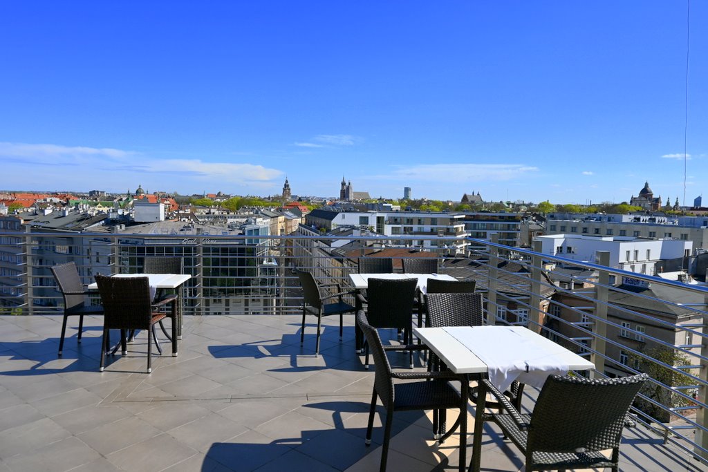 W samym sercu Krakowa, gdzie historia spotyka się z nowoczesnością, znajduje się miejsce, które oczarowuje nie tylko smakiem, ale przede wszystkim widokiem. Taras Kawiarni Oranżeria, usytuowany na 6. piętrze eleganckiego Hotelu Kossak, to punkt widokowy, który bez wątpienia zasługuje na miano jednej z najpiękniejszych panoram miasta. Nie trzeba wspinać się na wieże Mariacką ani wdrapywać się na Wawelską Katedrę – tutaj Kraków rozpościera się przed nami jak na dłoni, w całej swojej krasie.