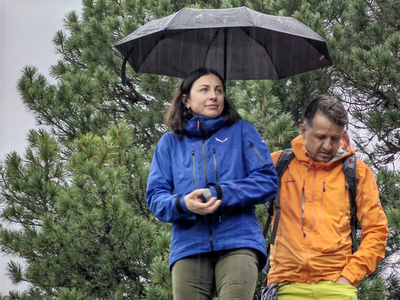 Rodzina i przyjaciele którzy dotarli na tę uroczystość, nie zważając na pogodę.