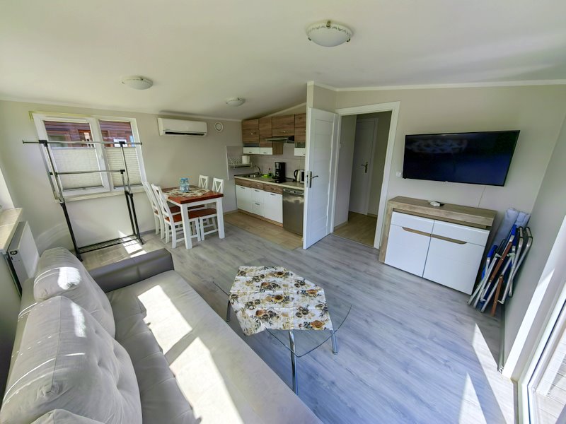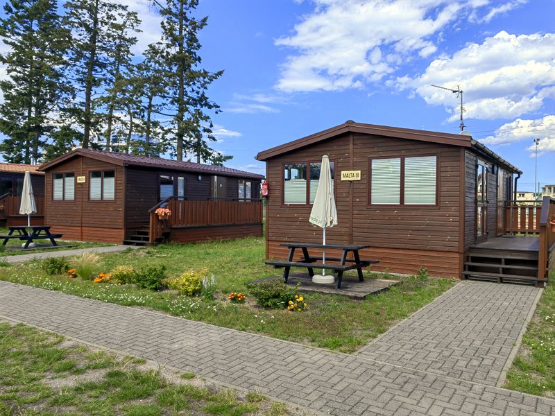 Sprawdziłem jak wygląda baza noclegowa dla rodziny czy grupki znajomych, chcących wynająć jeden z kilku odnowionych domków. Jest opcja z 2 lub 3 sypialniami, do tego łazienka, przedpokój i salon z aneksem kuchennym. Całość jest na uboczu kompleksu, co sprzyja wypoczynkowi w ciszy. Przed każdym domkiem jest miejsce na wieczorne „to i owo”.