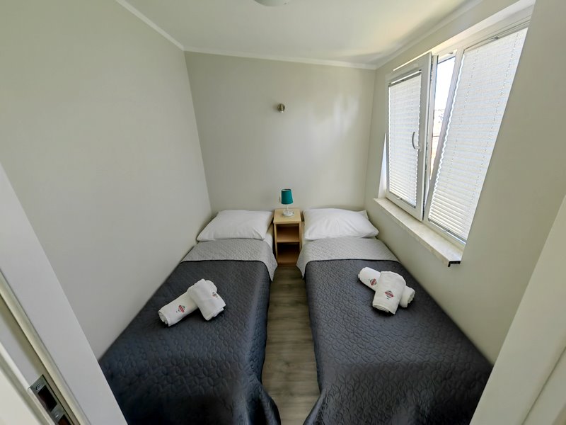 Pokój ekonomiczny z umywalką w pawilonie szeregowym. Przed wejściem znajduje się niewielka weranda z ławką. Pokój wyposażony w ręcznik kąpielowy, koc, toaletka. Restauracja z domową kuchnią i wieczorkami tanecznymi na drugim naszym Ośrodku „Pod Bukami” nad samym morzem . Do dyspozycji gości świetlica ze sprzętem rekreacyjnym , pokój zabaw dla dzieci oraz plac zabaw . Możliwość biesiadowania na wolnym powietrzu przy grillu .