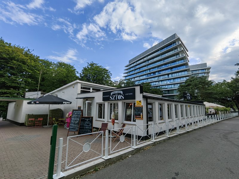 Ten ośrodek położony jest ok 250 m od plaży, natomiast jest jeszcze druga część kompleksu Gromady. Mniej słońca, więcej drzew i bliżej plaży a także bliżej restauracji. A w restauracji jak za dawnych dobrych czasów, dancingi i wieczorki przy muzyce na żywo. Z wieczornych tańców nie skorzystałem, ale rybka musiała być 🙂