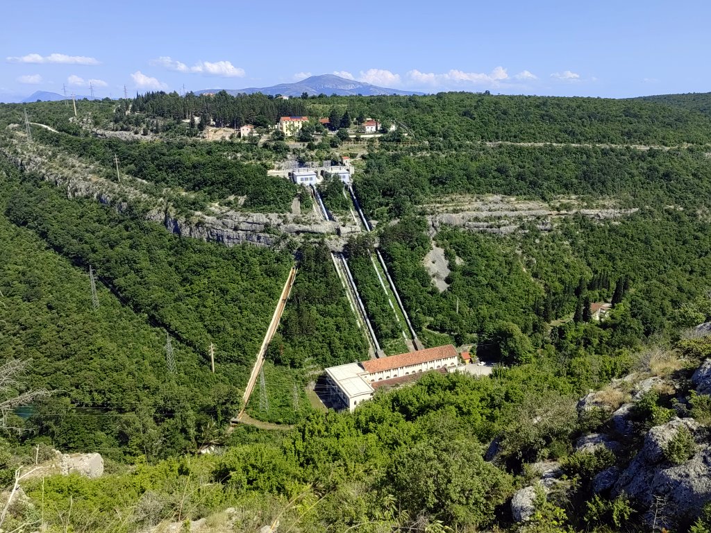 Eko-kampus Krka a poniżej elektrownia wodna. Choć wygląda niepozornie, jest drugą co do wielkości elektrownią wodną w Chorwacji a woda doprowadzana jest kilkukilometrowym kanałem podziemnym.