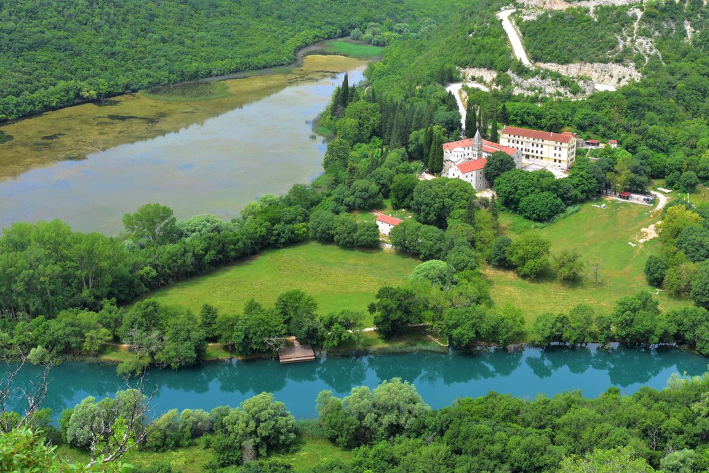 Kolejne pokonane kilometry doprowadzają mnie do miejsca gdzie rzekę i jezioro oddziela wąska grobla. Pomiędzy nimi stoi klasztor a jest to klasztor godny uwagi i zwiedzenia. Według publikacji prawosławnych monaster został ufundowany przez Helenę, córkę Stefana Urosza III i małżonkę chorwackiego księcia Mladena III Šubicia w 1345 r. Na miejscu, gdzie znajduje się klasztor prawosławny, pierwotnie funkcjonował klasztor rzymskokatolicki (franciszkański). W monasterskiej cerkwi znajduje się ikonostas złożony z kilku części pochodzenia rosyjskiego, pozyskanymi w XVIII w. W klasztornej zakrystii znajduje się epitrachelion św. Sawy, wykonany za życia świętego, średniowieczne księgi, w tym Pateryk z 1346 r., wydania prac Dositeja Obradovicia i Vuka Karadžicia dedykowane monasterowi. Pod cerkwią znajdują się także krypty i to one były dla mnie głównym celem wizyty w klasztorze.