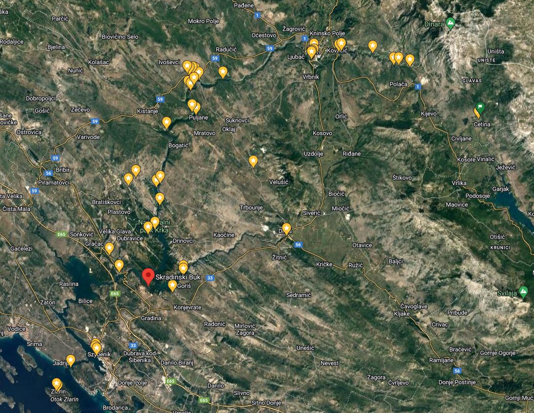 Źródło rzeki Krčić (Krka) nie jest już tak spektakularne więc za początek uważa się okolice tuż powyżej starego młyna, jakich dawniej na rzece było bardzo dużo. Spektakularny jest za to cały odcinek rzeki biegnący przez Park Narodowy Krka z wieloma pięknymi wodospadami i wąwozami przypominającymi zielony Kanion Kolorado. Wybierając trasę od źródła do ujścia, mogłem stopniować zachwyty nad tym regionem Chorwacji. Z Szybenika do źródła Cetiny i Krka (Krčić) a następnie wzdłuż rzeki biegnie droga. Można więc ten odcinek pokonać samochodem czy nawet rowerem. Jadąc z Szybenika do źródła, mamy do pokonania ok 70 kilometrową trasę, jednak wyruszając wzdłuż rzeki do jej ujścia, droga robi się nieco skomplikowana. Na miejscu okazało się że mój plan by przejść pieszo i z namiotem dokładnie wzdłuż rzeki Krka musiałem nieco zmodyfikować.