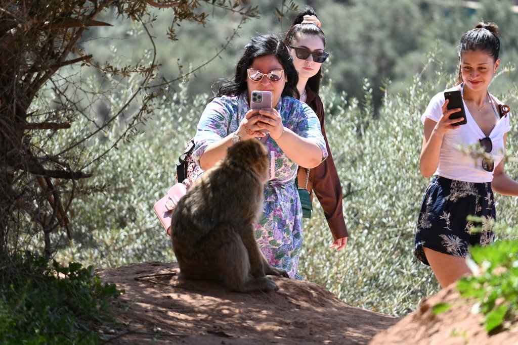 Po przejściu alejkami na ostatni taras widokowy gdzie wodospad mamy w pełnej okazałości, zaczynamy być otaczani przez małpki Makaki. Te sympatyczne stworzenia są już tak nauczone bliskości z ludźmi, że nie ma najmniejszego problemu na udane zdjęcia a nawet selfie. Karmione smakołykami są przez cały dzień a znużenie kolejnymi smakołykami widać aż nadto. No ale jak tu nie podać małpie orzeszka by ta zrobiła dobrą minę do zdjęcia? Wszak dla wielu jadących do Marrakeszu właśnie makaki są główną atrakcją.