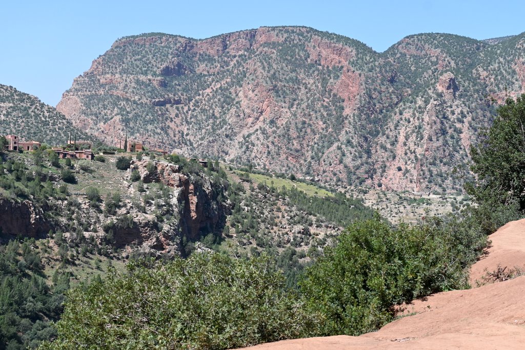 Po bliskim spotkaniu z wodospadem, tratwy dobijają do drugiego brzegu. Stąd betonowe alejki i schody prowadzą na kolejne tarasy widokowe. Na kilku takich tarasach są także restauracje i sklepiki z pamiątkami. Kto nie był nad Bałtykiem i nie zjadł drogiej ryby, czy w Zakopanem nie przepłacił parokrotnie za oscypka, ten ze zdziwieniem będzie się przyglądał tłumom chcącym zjeść cokolwiek, czekając na stolik z widokiem na majestatyczne kaskady wody. Wybór niewielki a za większość pozycji z menu należy zapłacić od ok 120 dirhamów wzwyż. Byłem, zjadłem i głodny wyszedłem. Kultowe zdjęcie z Misiem na Krupówkach także ma swoją cenę, podobnie jest i nad wodospadem Ouzoud.