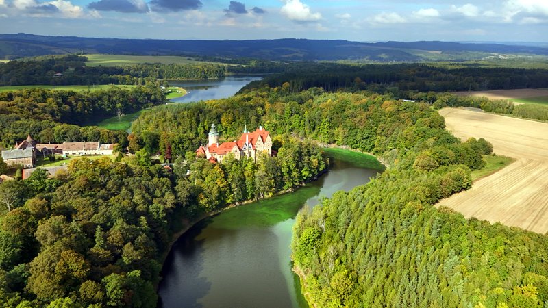 Nieco dalej na zachód, między lasami i jeziorami, wyrasta potężny Zamek Czocha – średniowieczna warownia z bogatą historią, tajemniczymi korytarzami i widokiem na Jezioro Leśniańskie i Złotnickie. To jedno z najbardziej fotogenicznych miejsc na Dolnym Śląsku, często pojawiające się w filmach i legendach.